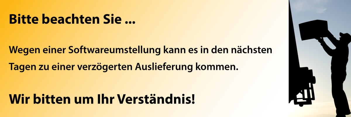 Wegen einer Softwareumstellung kann es aktuell zu einer verzögerten Auslieferung kommen.